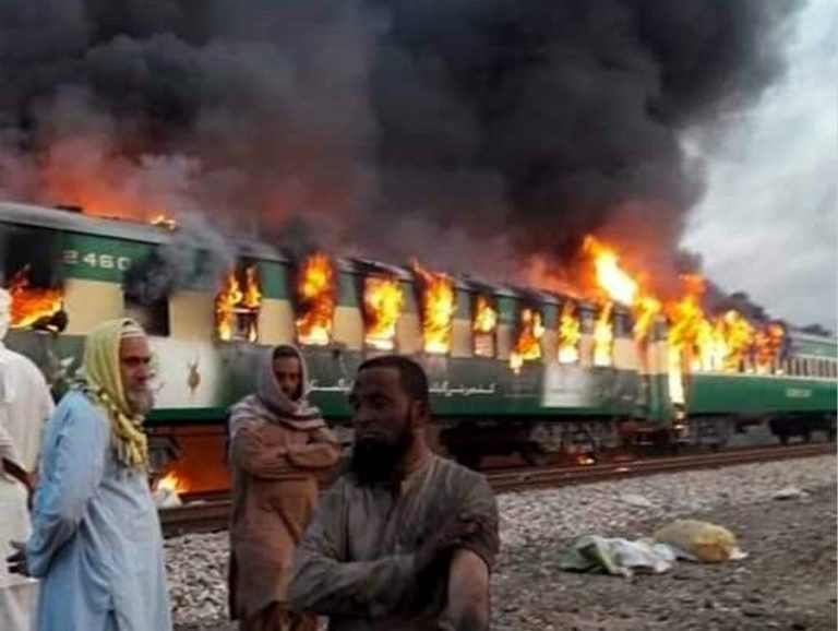 भिषण आगलागी हुँदा ६२ जनाको मृत्यु भएको छ । आगलागीमा दर्जनौं यात्रु घाइते भएक छन् । तेज गाम एक्सप्रेसमा आगलागी भएपछि पाकिस्तान सरकारले रेलको सुरक्षामा गम्भीर चासो व्यक्त गरेको छ ।