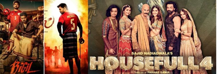 दिपावलीको अवसर पारेर २५ अक्टोबर बलिउड र तमिल दुई फिल्महरुले बक्सअफिसमा जबरजस्त कमाई गरिरहेका छन् । मल्टिस्टारर बलिउड फिल्म “हाउसफुल ४” र तमिल सुपरस्टार विजय स्टारर फिल्म “बिगिल” एकसाथ प्रदर्शनमा आएको हो । रिपोर्टका अनुसार प्रदर्शनको ५ दिनमा “हाउसफुल ४” ले सय करोडको व्यापार गरेको छ भने फिल्म “बिगिल” ले विश्वभरबाट २ सय करोड कमाइएको छ ।