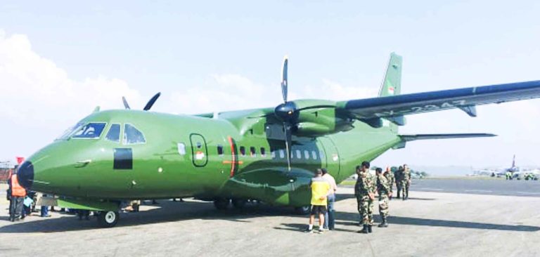 काठमाडौं १७ कार्तिक । नेपाली सेनाले खरिद गरेको सीएन२३५–२२० विमान शनिबार इन्डोनेसियाबाट नेपाल आइपुगेको छ । उक्त विमान इन्डोनेसियाको सरकारी विमान कम्पनी पीटी डिरगन्तारा इन्डोनेसिया (पीटीडीआई) ले नेपाली सेनाको मागअनुसार बनाएको हो ।
