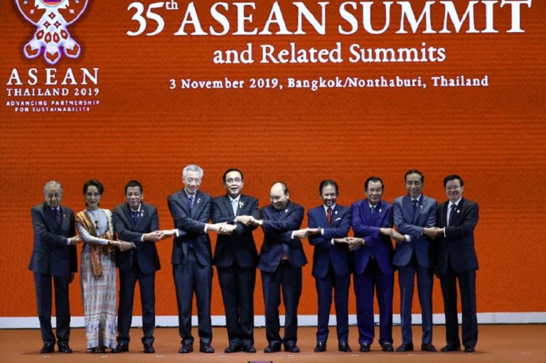 बैंकक, १७ कात्तिक । दक्षिणपूर्वी एसियाली राष्ट्रहरुको सङ्गठन (आसियन) को ३५ औँ सम्मेलन शुक्रबार थाइल्याण्डमा सुरु भएको छ ।बहुपक्षधरता र सम्पर्क सञ्जालमा केन्द्रीत हुनेगरी थाइल्याण्डको राजधानी बैंककमा सम्मेलन सुरु भएको हो ।