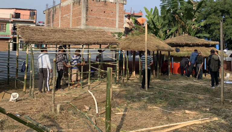 जिल्लाको व्यास नगरपालिका–४ सिमलटारमा जनजातिका नमूना घर निर्माण गरिँदै । बुधबारदेखि शुरु हुने तनहुँ सांस्कृतिक तथा पर्यटन महोत्सवमा आउने दर्शकलाई जनजातिको रहनसहन र संस्कृतिबारे जानकारी दिन सात जातिका नमूना घर निर्माण गरिएको छ । तस्वीर : कृष्ण न्यौपाने, दमौली