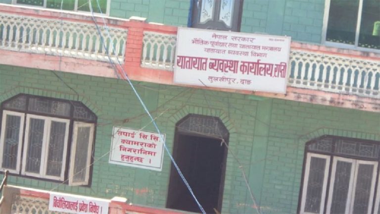 तुलसीपुर, २० कात्तिक : यातायात व्यवस्था कार्यालय दाङको ट्रायल सेन्टर भाडाको जग्गामा सञ्चालित छ ।