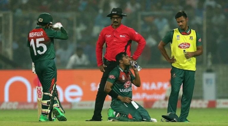 भारत र बंग्लादेश बीच चलिरहेको टि २० क्रिकेटको पहिलो खलेमै बंगलादेशका दुई खेलाडीले मैदानमै बान्ता गरेका छन् । उक्त खेल दिल्लीमा भएको थियो । दिल्लीको प्रदूषणका कारणउक्त घटना घटेको भारतीय संचारमाध्यमले जनाएका छन् ।