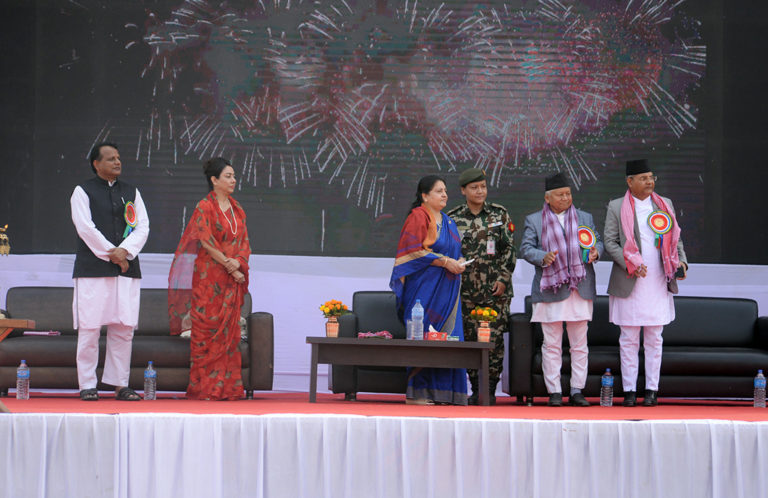 नेपाल चलचित्र निर्माता संघको बिहीबार वीरगञ्जमा आयोजना गरेको नेपाली चलचित्र स्वर्णिम महोत्सव २०७६ को रिमोटले उद्घाटन गर्दै राष्ट्रपति विद्यादेवी भण्डारी । तस्बिर : विजयकुमार महतो