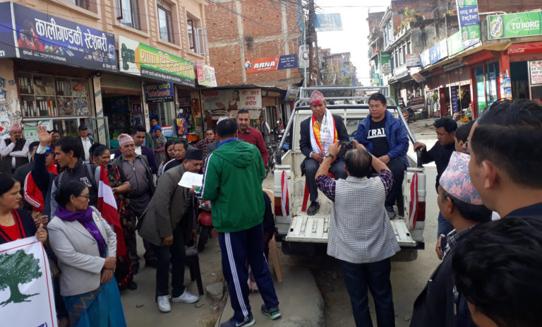 प्रदेशसभा उप–निर्वाचनका लागि मनोनयन दर्ता पछि । बागलुङ बजारमा आयोजित कोणसभालाई सम्बोधन गर्दै नेपाली काँग्रेसबाट बागलुङ क्षेत्र नं २ (ख) प्रदेश सभाका उम्मेदवार जीत शेरचन । तस्बिर : तारानाथ आचार्य