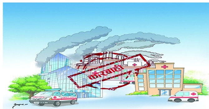 रोग नियन्त्रण गर्ने निकाय नै वातावरण प्रदूषण गर्न सक्रिय रहेको वातावरण विभागको तथ्याङ्कले देखाउँछ । २६ मध्ये १२ वटा अस्पताल वातावरण प्रदूषण गरेबापत कारबाहीमा परेका हुन् । सरकारले तोकेको मापदण्डविपरीत धुलो, धुवाँ र अन्य प्रदूषण उत्पादन गरेबापत ती उद्योग प्रतिष्ठान कारबाहीमा परेको वातावरण निरीक्षक गोविन्द लामिछानेले जानकारी दिए ।