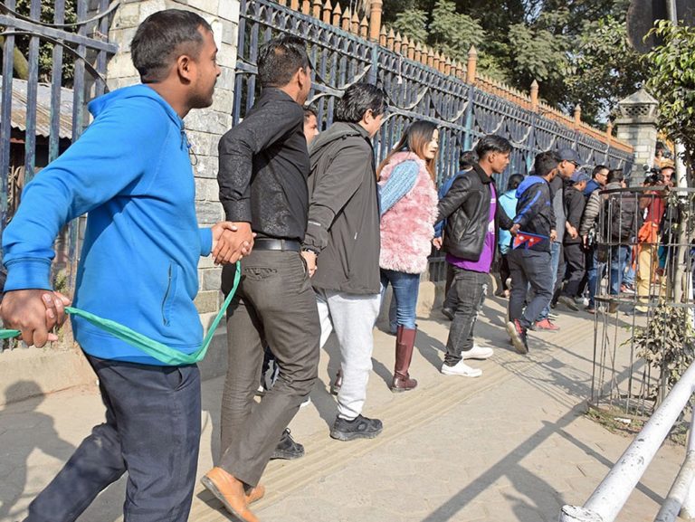 काठमाडौँ, २३ कात्तिक : विश्व स्वतन्त्र दिवसका अवसर पारेर अकुपाई टुँडिखेल अभियानले टुँडिखेल संरक्षणको माग गर्दै शनिबार बिहान बनाइएको मानव साङ्लो । तस्वीर : चन्द्रकला क्षेत्री / रासस