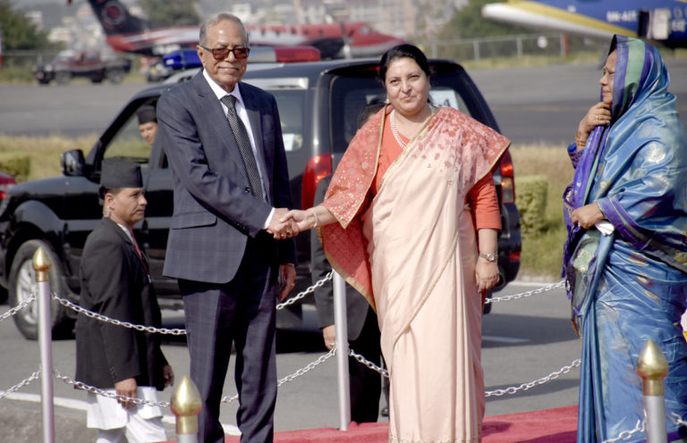 काठमाडौं,कार्तिक २७ । जनगणतान्त्रिक बङ्गलादेशका राष्ट्रपति मोहम्मद अब्दुल हमिद मङ्गलबार नेपालको औपचारिक राजकीय भ्रमणमा रहेका छन् । राष्ट्रपति विद्यादेवी भण्डारीको औपचारिक मैत्रीपूर्ण निमन्त्रणामा उनी नेपालको चारदिने राजकीय भ्रमणमा आएका हुन् ।
