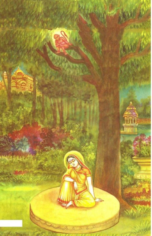 “अशोक वाटिकामा माता सीता, राम चरित्र मानिसको हृदय सुन्दर काण्डको एक अत्यन्त मर्म स्पर्शी स्थल छ । बन्दि बनाएकी सीताको ह्रदयको मर्माहत व्यथालाई हनुमानले थाहा पाए । पवन पुत्र हनुमानले प्रभु रामलाई माता सीताको हरणको खबर दिएको बताए साथै माता सीतालाई लिनका लागि श्रीरामलाई पठाउने समय दिएर हनुमानले उनलाई विश्वास दिलाए ।-धार्मिक ग्रन्थको सहयोगमा