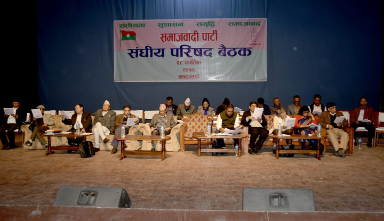काठमाडौं, २८ कार्तिक । सत्तारुढ दल समाजवादी पार्टीको आजबाट संघीय परिषद बैठक सुरु भएको छ । बैठकमा संघीय परिषद अध्यक्ष डा. बाबुराम भट्टराईले सरकार छोड्नुपर्ने अडान राखेका छन् । तर, पार्टीका केन्द्रीय अध्यक्ष तथा उपप्रधानमन्त्री उपेन्द्र यादव भने कुनैपनि हालतमा सरकारबाट बाहिरिने पक्षमा छैनन् ।