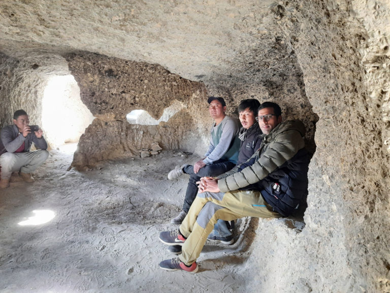 मुस्ताङको लोघेकर दामोदरकुण्ड गाउँपालिका–१ चराङमा रहेको सात तले र एक सय ५० भन्दा बढी कोठा भएको चराङ गुफा भित्र पर्यटक । चराङ गुफा नेपालकै ठूलो भएको स्थानीयबासीले दावी गरेका छन् । तस्वीर : निरज थकाली