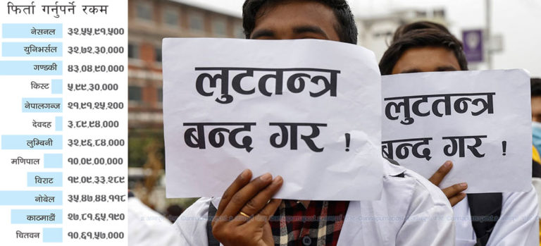 राष्ट्रिय सतर्कता केन्द्रको अध्ययनअनुसार पछिल्लो चार वर्षमा मुलुकभरका १२ मेडिकल कलेजले विद्यार्थीबाट सरकारी मापदण्डबाहेक दुई अर्ब ८५ करोड १३ लाख १६ हजार रुपैयाँ उठाएका छन्। यो विद्यार्थीबाट लिन पाउने नियमित शुल्कबाहेकको रकम हो। मेडिकल कलेजमा नेता(नाता स् पुँजी विद्यार्थीको, हात राजनीतिक दलको यी कलेजले नियमितबाहेक २४ वटा थप शीर्षकमा अतिरिक्त शुल्क उठाइरहेका छन्। भर्ना, दर्ता, सम्बन्धन, संस्थागत, सामुदायिक शुल्क, प्रयोगशाला, कर, मेडिकल शुल्क, विद्यार्थी कार्यक्रम, अतिरिक्त क्रियाकलाप, शिक्षक शुल्क तथा विविध शीर्षकमा शुल्क उठाइएको छ। बढी शुल्क उठाउनेमा वीरगन्जको नेसनल मेडिकल, भैरहवाको युनिभर्सल कलेज अफ मेडिकल साइन्सेज, पोखराको गण्डकी मेडिकल कलेज एन्ड टिचिङ हस्पिटल, ललितपुरको किस्ट मेडिकल कलेज, नेपालगन्जको नेपालगन्ज मेडिकल कलेज छन्।