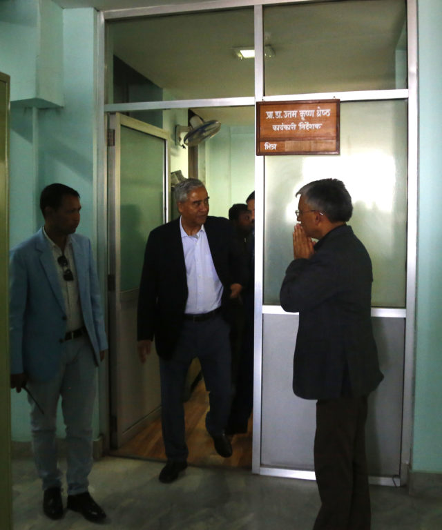सभापति देउवाले मनमोहन सेन्टर महाराजगंज पुगी प्रधानमन्त्रीको स्वास्थ्य अवस्थाबारे जानकारी लिएका हुन् । धनकुटाबाट काठमाडौं आइ सिधै अस्पताल पुगढेका देउवाले चिकित्सकहरुमार्फत प्रधानमन्त्रीको स्वास्थ्यबारे जानकारी लिए ।
