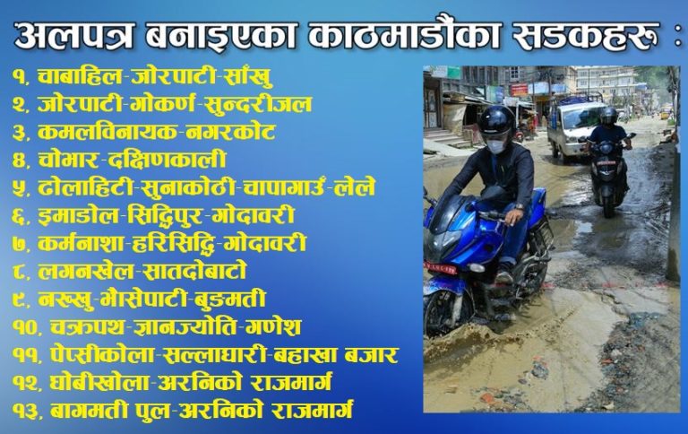 अलपत्र बनाइएका काठमाडौंका सडकहरु :