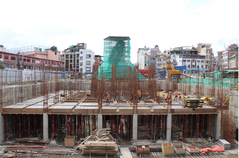 निर्माणको कामअन्र्तगत अहिले दोस्रो तलाको ढलान गर्ने तयारी भइरहेको छ भने टावरमुनिको काम सम्पन्न भइसकेको छ । नेपाली र केही भारतीय नागरिकसहित दैनिक १५० कामदार नियमितरूपमा निर्माणका लागि खटिएका छन् ।