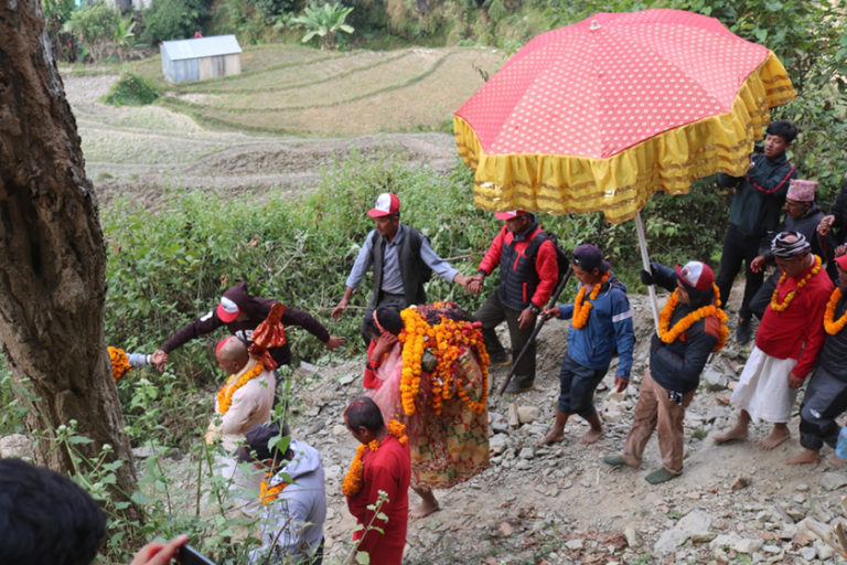एक वर्षभित्र विभिन्न तीनवटा मन्दिरमा लगेर राख्ने र त्यहीं पूजाआजा गर्ने अनौठो र रोचक परम्परा छ। वर्षमा तीन पटक भगवतीको मूर्तिलाई बोकेर देवी सार्ने परम्परा छ। खाली खुट्टा भगवतीलाई पिठ्युँमा बोकेर करिब तीन घण्टाको ओह्रालो तथा अप्ठेरो बाटो हुँदै भगवतीलाई बेंसीको मन्दिरमा ल्याइने परम्परा छ।