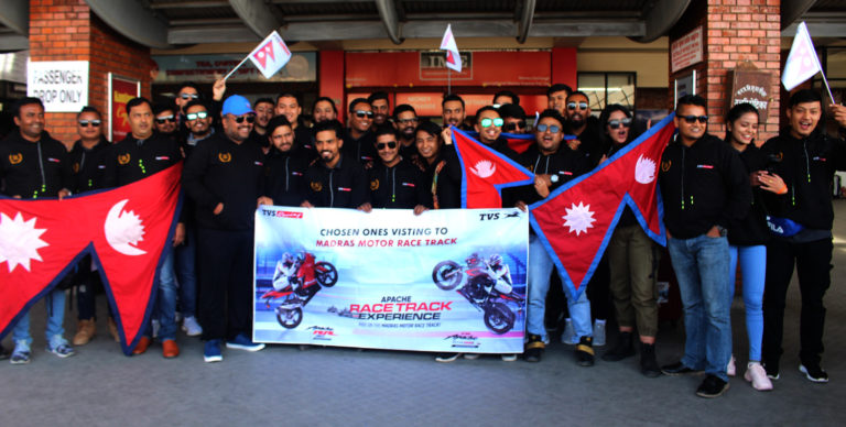टिभिएसको आधिकारीक विक्रेता जगदम्वा मोटर्स प्रा.लि.ले गत असारदेखि शुरु गरेको टिभिएस बाइक रेसिङ प्रतियोगिता अन्तरगत देशभरबाट छनौट भएका उत्कृष्ट २५ जना नेपाली राईडर्सहरु भारत गएका हुन् । भारतकै ठूलो र प्रख्यात मद्रास मोर्टर्स रेस ट्रयाकमा खेलाडीले एक दिन बाइक रेसिङ गर्नेछन् ।