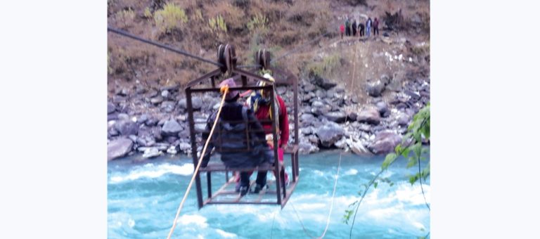 काठमाडौँ, १७ मंसिर । सरकारले देशलाई नै तुइनमुक्त घोषणा गरेको दुई वर्ष पुग्नै लाग्दा पनि हुम्लावासी अझै आधा दर्जन तुइनमा तर्न बाध्य हुँदै आएका छन् । कर्णाली नदीमाथि झोलुङ्गे तथा ट्रस ब्रिज निर्माण नगरिँदा हुम्लावासीलाई जोखिम उठाएरै भए पनि तुइनबाट वारपार गर्न बाध्य छन् ।