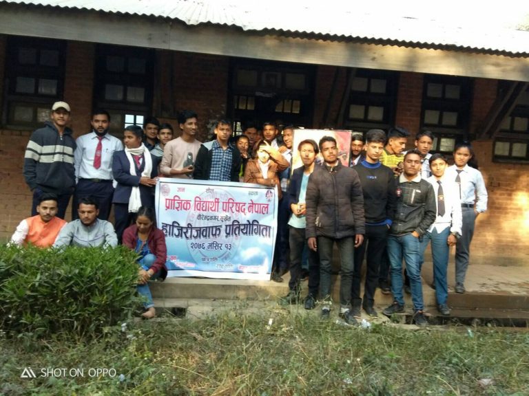 काठमाडौँ, १७ मंसिर । प्राज्ञिक विद्यार्थी परिषद् नेपाल वीरेन्द्रनगर सुर्खेतको आयोजनामा हाजिरीजवाफ प्रतियोगिता सम्पन्न भएको छ ।