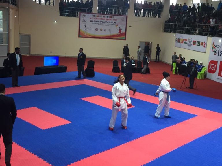 काठमाडौं, १७ मंसिर । सुनिता महर्जनले कराँतेको कुमुतेतर्फ स्वर्ण पदक जितेकी छिन् । मंगलबार भएको खेलमा महर्जनले ६८ केजी तौल समूहमा पाकिस्तानी खेलाडी कुलसुमलाई पराजित गरेकी हुन् ।