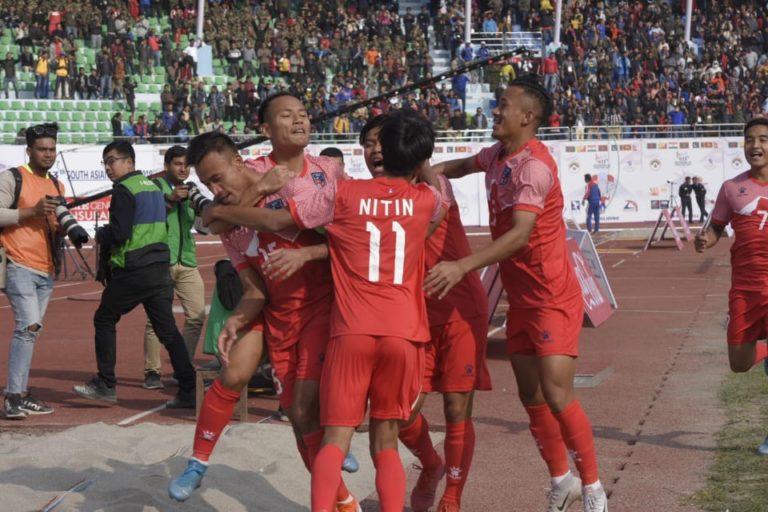 खेलको ७८ औँ मिनेटमा मिक्छेन तामाङले फ्रि किकमार्फत गरेको प्रहार गोलमा परिणत हुँदा नेपालले जित पक्का गरेको थियो । साविक स्वर्ण पदक विजेता नेपालले दास्रो खेल बुधबार श्रीलंकासंग खेल्ने छ ।