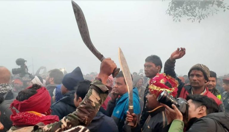 काठमाडौँ, १८ मंसिर । गढीमाई मन्दिरमा मंगलबार साढे ८ हजार८ पाडाको बलि दिइएको छ । हरेक ५ वर्षमा लाग्ने गढीमाई मेलामा अघिल्लोपटक करिब ५ हजार पाडाको बलि चढाइएको थियो । महागढीमाई नगरपालिका–१ बरियारपुरस्थित मन्दिरमा तान्त्रिक विधिअनुसार पञ्चबलि दिएर पूजा गरिएको हो । मन्दिरमा ब्रह्मस्थान र गढीमाईलाई रंगशालामा जम्मा गरिएका पाडा बलि चढाइएको थियो ।
