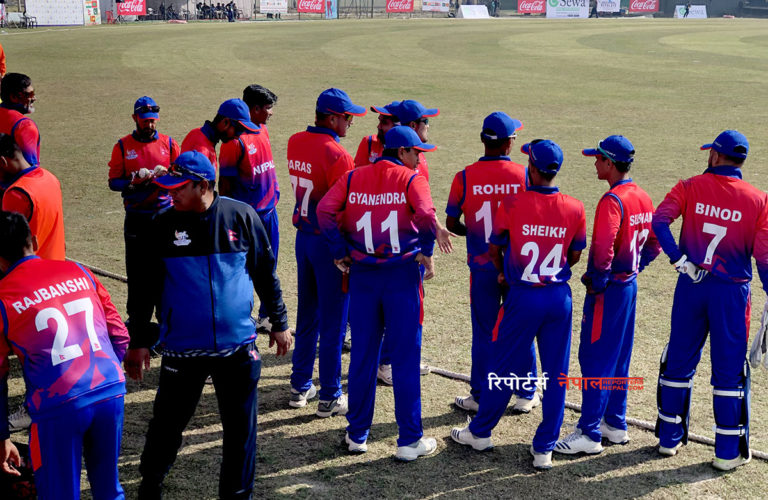 त्यस्तै रोहितकुमार पौडेलले ६ तथा आरिफ शेख ४ रनमा अविजित रहे । भूटानका कर्मा दोर्जीले दुई तथा तोब्डेन सिङ्गेले एक विकेट झारे । यसअघि भएको पहिलो खेलमा नेपाल श्रीलङ्कासँग ६ विकेटले पराजित भएको थियो । अब नेपालले भोलि माल्दिभ्ससँग खेल्नेछ । Photo Source : Mukund kalikote