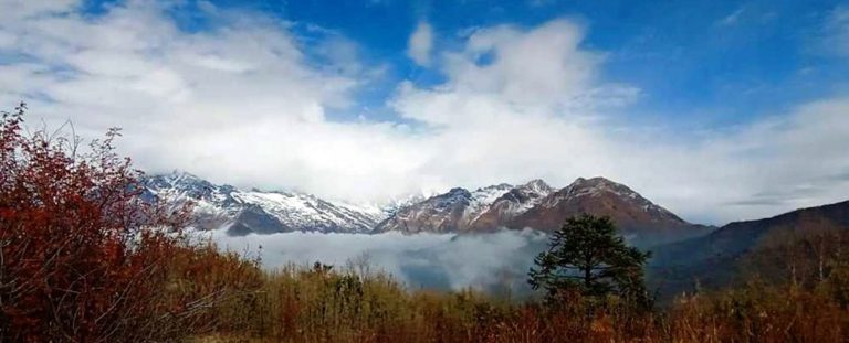१९ मङ्सिर : म्याग्दीको धौलागिरि आइसफल पदमार्गबाट देखिएको सुन्दर दृश्य ।
