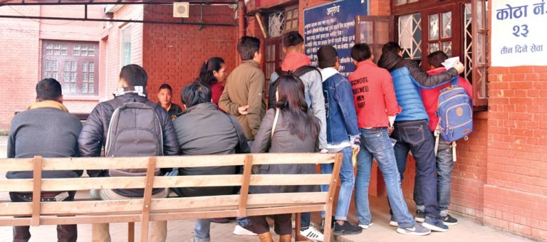 काठमाडौँ, २० मंसिर । बिहीबार बिहान ९ः३० बजे राहदानी विभाग परिसरमा राहदानी बनाउनेको लर्को बढ्दै थियो । केही फोटोकपी गर्न दगुरादगुरमा थिए । केही अनलाइन फाराम कता भर्ने भनेर सोधखोज गर्दै थिए । कर्मचारी कार्यालय प्रवेश गर्ने समय रहेकाले भित्री आवतजावत तीव्र थियो ।