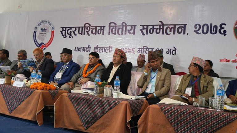 २० मङ्सिर : सुदूरपश्चिम प्रदेश सरकारको आयोजनामा शुक्रबार धनगढीमा शुरु भएको ‘सुदूरपश्चिम वित्तीय सम्मेलन–२०७६’ मा सहभागी नेपाल कम्युनिष्ट पार्टी (नेकपा)का अध्यक्ष पुष्पकमल दाहाल ‘प्रचण्ड’लगाएतका व्यक्तित्वहरु ।