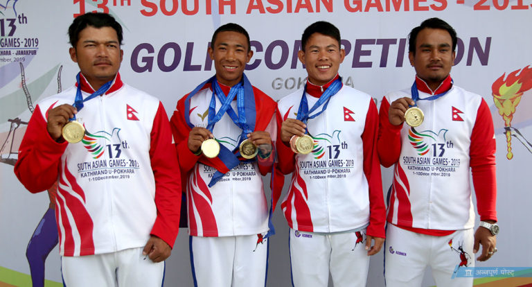 काठमाडौं, मंसिर २१ । १३औं दक्षिण एसियाली खेलकुद साग गल्फमा नेपालले ऐतिहासिक दुई वटा स्वर्ण पदक जितेको छ। पार ७२ को गोकर्ण फरेस्ट गल्फ कोर्समा शुक्रबार सम्पन्न खेलमा नेपालले पु्रुष एकल र पुरुष टिम स्पर्धामा दुई स्वर्ण जितेको हो। साग गल्फमा नेपालले पहिलो पटक दुईवटा स्वर्ण पदक जितेको हो।