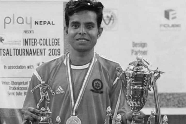 काठमाण्डौँ २२ मंसिर । नेपाली फुटसल खेलाडी कर्फु रसाइलीको खेलको क्रममा निधन भएको छ । शनिकार फुटसल खेल पछि ह्दयघातको कारण निधन भएको हो ।