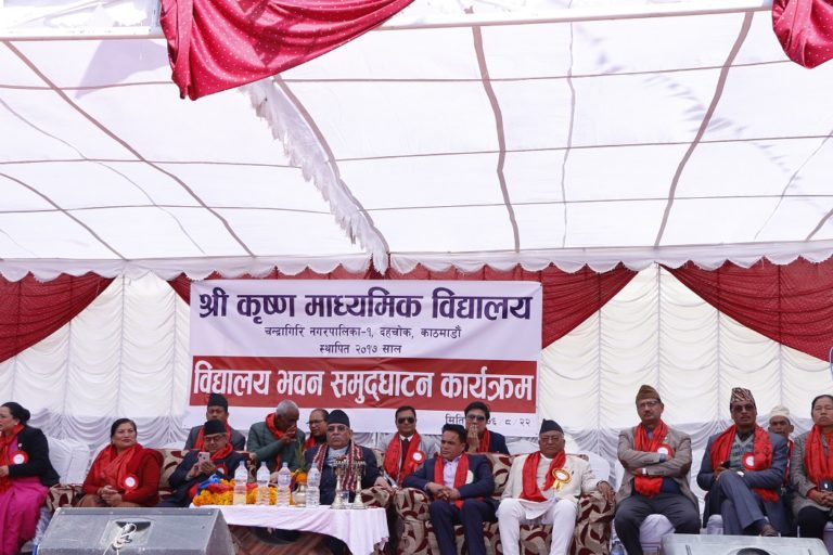 काठमाडौं, २२ मंसिर। सत्तारुढ दल नेपाल कम्युनिस्ट पार्टी (नेकपा) का अध्यक्ष तथा पूर्व प्रधानमन्त्री पुष्पकमल दाहाल ‘प्रचण्ड’ले सरकार र पार्टीको ध्यान सामुदायिक विद्यालयहरुको पूर्वाधार र शैक्षिक गुणस्तरको अभिवृद्धि गर्नेतर्फ रहेको बताएका छन् ।