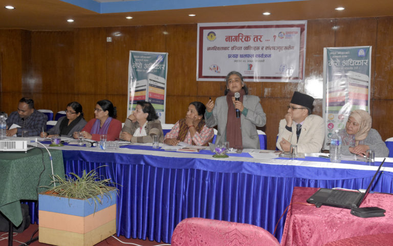 महिला, कानून र विकास मञ्चले आइतबार काठमाडौंको अल्फाबिटामा आयोजना गरेको ‘नागरिकताबाट वञ्चित व्यक्ति र सांसदसँगको छलफल’ कार्यक्रमका वक्ताले संसद्मा विचाराधीन नागरिकतासम्बन्धी विधेयक सङ्घीय संसद्को आगामी हिउँदे अधिवेशनबाट पारित हुनुपर्नेमा जोड दिएका थिए ।