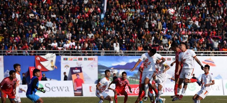 काठमाडौं, २५ मंसिर । १३औं दक्षिण एशियाली खेलकुद सागमा पुृरुष तर्फको फुटबलको फाइनलमा नेपाल विजयी भएको छ । खेलका शुरूवातको १६औं मिनेटमा नेपालले भूटान विरुद्ध एक गोल गरेको थियो भने पहिलो हापको अन्त्य गरी भुटानले एक गोल गर्दै खेल बराबरीमा पु¥याएको थियो ।