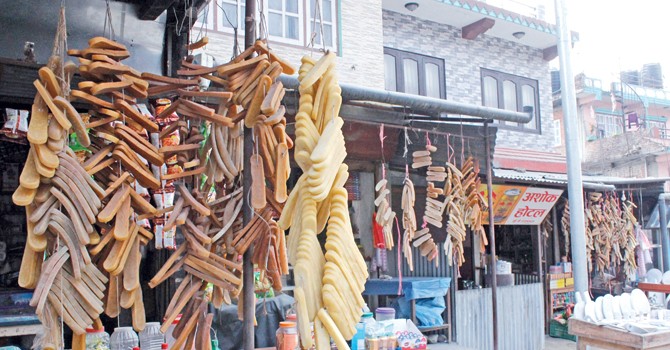काठमाडौँ, २६ मंसिर । सिन्धुपाल्चोकको लिसङ्घुपाखर गाउँपालिका अन्तर्गतको मुडे बजारका सबै घर र पसलमा छुर्पी नै छुर्पी पाइने गरेको छ । मुडेमा करिब सयभन्दा बढी पसल छन् । ती सबै पसलमा लेकमा उत्पादन भएका चौँरीको दूधबाट उत्पादन भएका छुर्पी पाइन्छ । प्रत्येक पसलमा छुर्पीका लहरा नै लहरा झुन्ड्याइएको छ । जिरी, ओखलढुङ्गाबाट राजधानी जाँदै गरेका र राजधानीबाट भ्रमणमा आएकाको पहिलो रोजाइमा छुर्पी पर्ने भएका कारण मुडेका प्रत्येक पसलमा छुर्पीको लहरा र गोदाम नै पाइने गरेको छ ।
