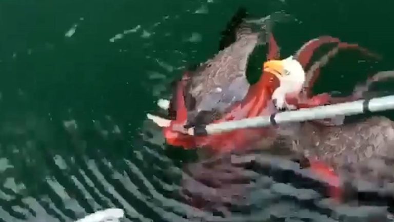 अक्टोपसले चीललाई बेरेर पानीभित्र लान खोज्दा… भिडियोसहित