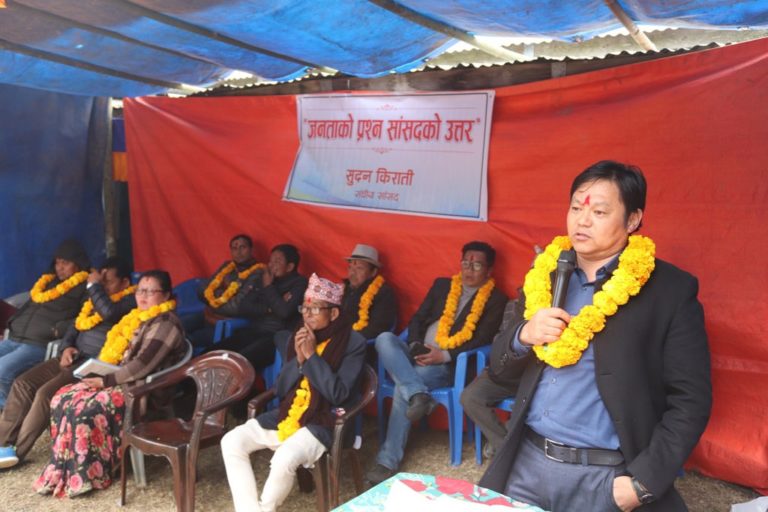 ३० मङ्सिर : निर्वाचन जितेपश्चात जनप्रतिनिधि जनताको घरदैलौमा फर्कदैनन् भन्ने गुनासो सुनिन्छ । तर ठीक यसको वीपरीत भोजपुरबाट निर्वाचित सङ्घीय सांसद सुदन किराती भने ‘जनताको प्रश्न सांसदको उत्तर’ कार्यक्रम लिएर गाउँगाउँमा पुग्न थालेका छन् । उनले स्थानीय जनताको समस्या बुझ्दै, स्थानीयमा रहेका सडक, विद्युत्, खानेपानीलगायतका समस्या समाधानमा भूमिका खेल्ने बताएका छन् ।