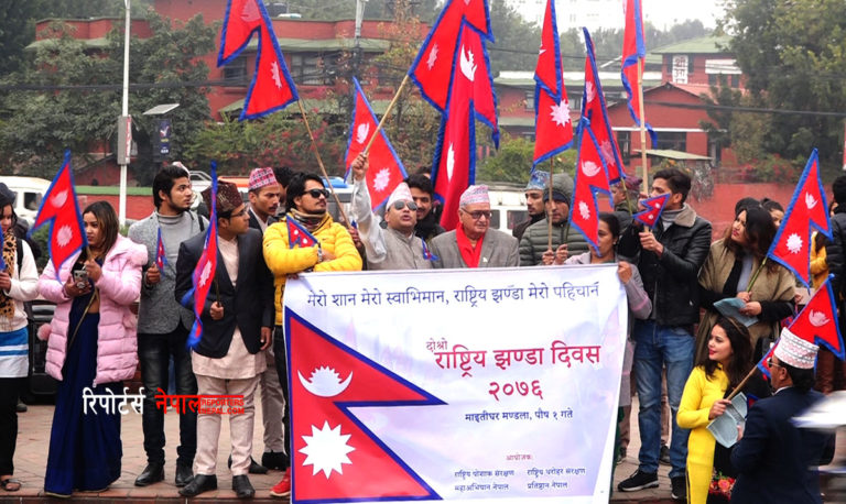 काठमाडौं, १ पुस । आज पुस १ गते । काठमाडौं र काठमाडौं बाहिर दोस्रो राष्ट्रिय झण्डा दिवस विभिन्न कार्यक्रम गरी मनाइएको छ । राष्ट्रिय धरोहर संरक्षण प्रतिष्ठान नेपाल र राष्ट्रिय पोसाक संरक्षण महाअभियान नेपालले गत वर्षबाट यो दिवस मनाउँदै आएको छ ।