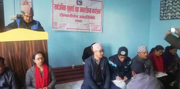 जनताका साझा समस्या समाधानको प्रयासमा काठमाडौँ महानगरपालिका वडा नं. ४ ले जनतासँग जनप्रतिनिधि कार्यक्रम सञ्चालन गरिरहेको छ । टोलबासीका समस्या समाधानमा काठमाडौँ क्षेत्र नं. ५ (१) का प्रदेशसभा सदस्य नारायण सिलवाल र सीता अधिकारी (दाहाल) सक्रिया रुपमा लागेका छन् ।