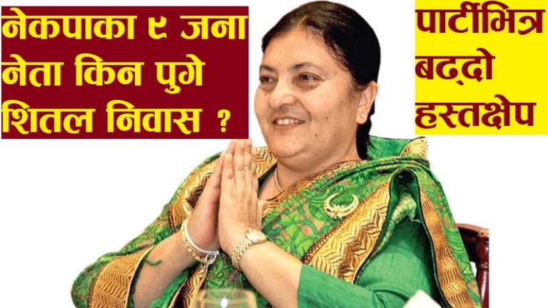 काठमाण्डौ । सत्तारुढ दल नेकपाभित्र राष्ट्रपति विद्यादेवी भण्डारीले अनावश्यक हस्तक्षेप गरेको खुलासा भएको छ । पार्टी कार्यालय धुम्बाराहीमा स्थायी कमिटि बैठक बसिरहेका बेला राष्ट्रपतिले एक दर्जन नेताहरुलाई शितल निवास बोलाएर छलफल गरेपछि विवाद बढेको छ ।
