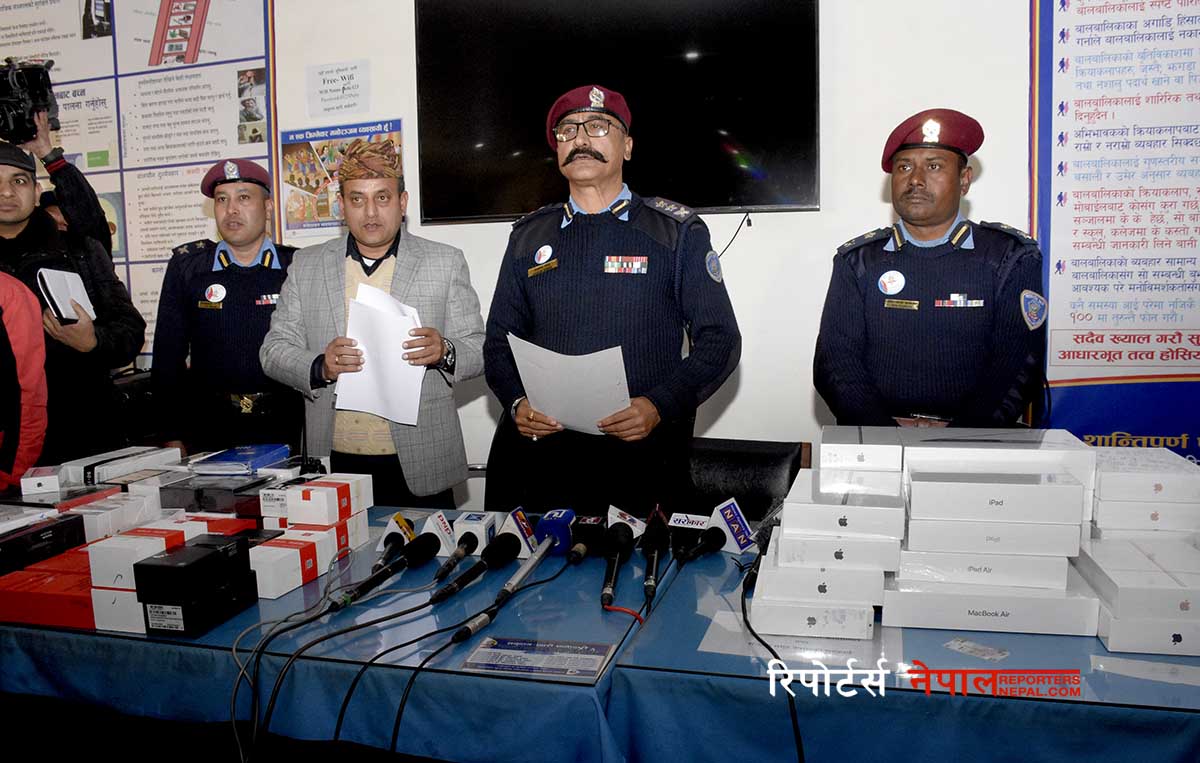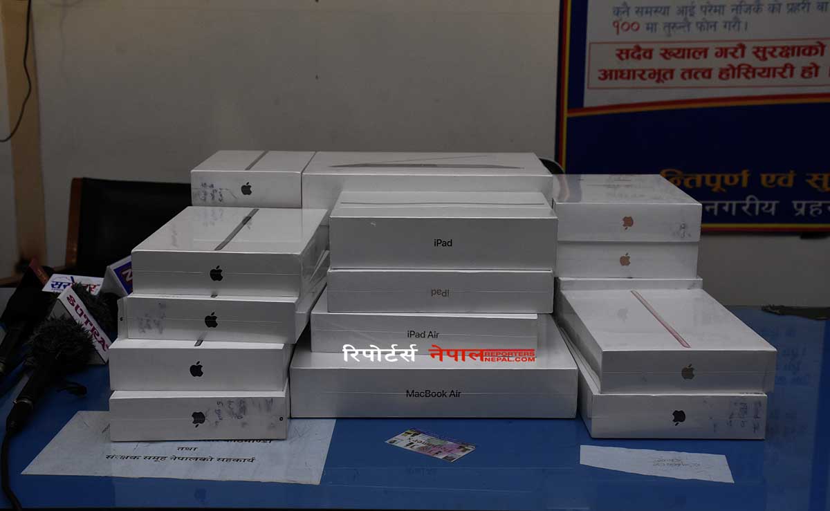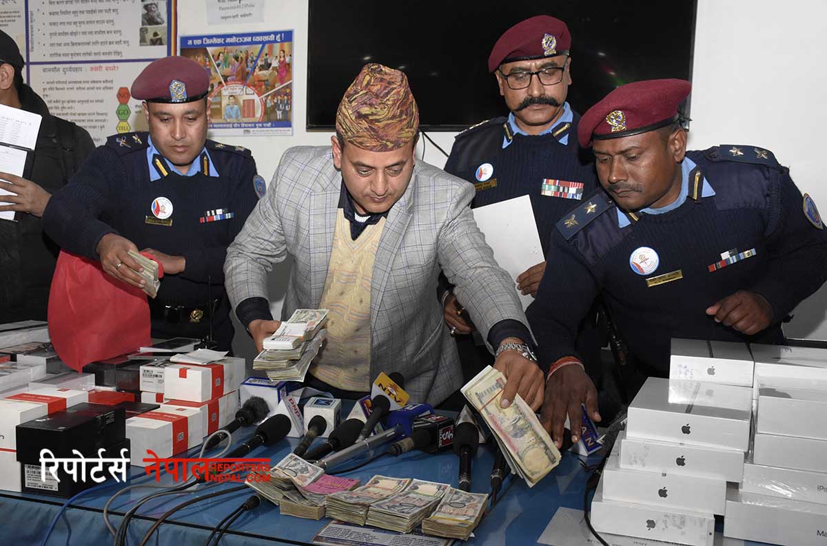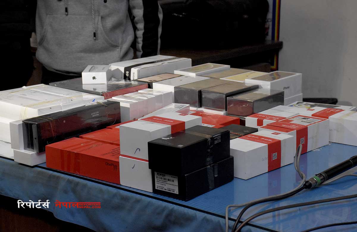 महानगरीय प्रहरी वृत्त स्वयम्भूका प्रमुख, प्रहरी नायब उपरीक्षक लालध्वज सुवेदीले भन्सार छलेर ल्याएको मोबाइललगायतका विद्युतीय सामानसहित दुई जनालाई पक्राउ गरिएको जानकारी दिए । पक्राउ परेकाको नाम, ठेगाना खुलाएको छैन । पक्राउ परेकासँग प्रहरीले रु ५५ लाख मूल्य बराबरको मोबाइल तथा जिन्सी सामान, रु १५ लाख ७७ हजार नगद, रु पाँच लाख ७३ हजारको एनएमवि बैंकको चेक एक थान बरामद गरेको छ ।