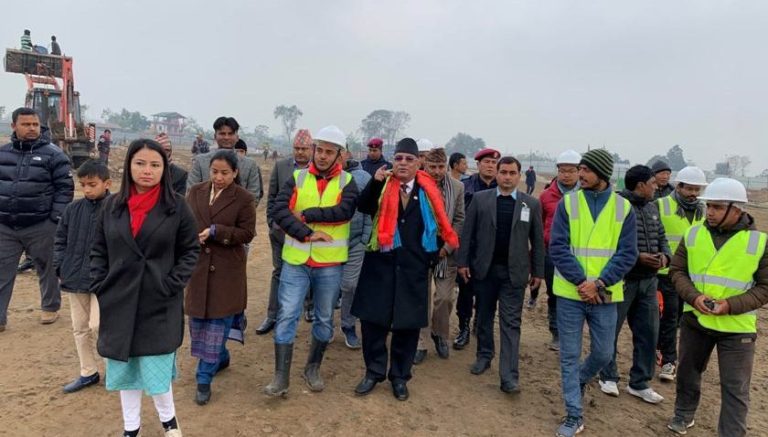 प्रचण्डद्वारा भरतपुरमा निर्माणाधीन क्रिकेट रङ्गशालाको अवलोकन