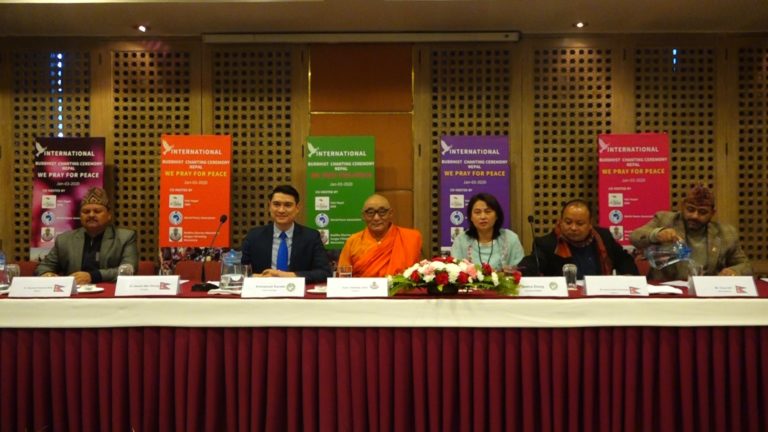काठमाडौं, ११ पुष । नेपाल भ्रमण वर्ष तथा सन २०२० लाई मध्यनगर गर्दै बिश्वशान्तिका लागि आगामी जनवरी ३ तारिकका दिन काठमाडौंमा अन्तराष्ट्रिय बौद्ध जप समारोह हुने भएको छ । विश्व शान्ति संघका साथै र बुद्ध धर्म महाविहार लगायतको आयोजनामा सम्मेलन समारोह हुन लागेको शुक्रबार काठमाडौंमा आयोजित पत्रकार सम्मेलनमा जानकारी दिईएको छ ।