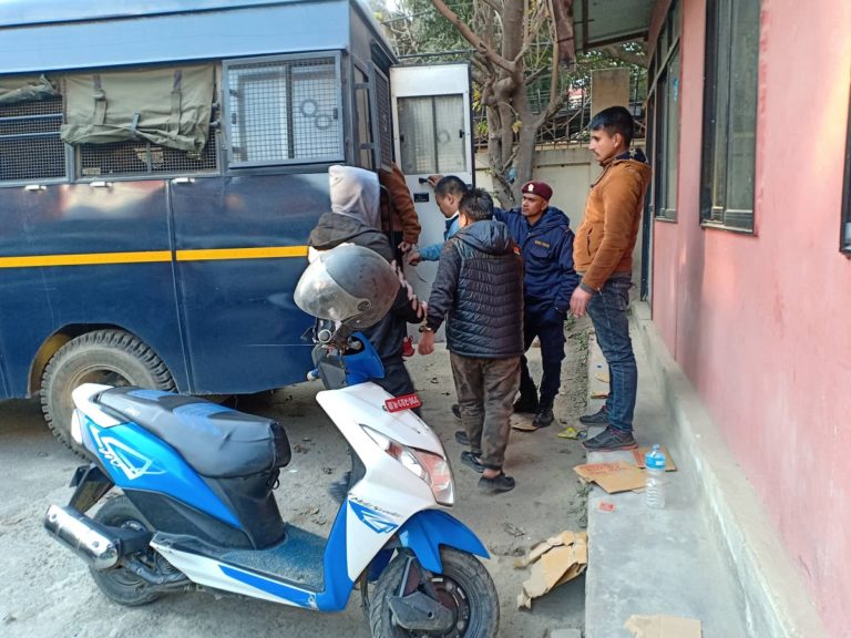 काठमाडौं, १३ पुष । काठमाडौंबाट पक्राउ परेका सयभन्दा बढि चिनियाँ नागरिकमाथि प्रहरीमाथि अभद्र व्यवहार गरेकोमा मुद्दा दायर भएको छ । आइतबार प्रहरीको ठूला र साना गाडी लावालस्कर लाग्दै जिल्ला प्रशासन कार्यालय काठमाडौंमा रोक्किए । गाडीमा मानिसहरु कोचाकोच थिए जसका कारण चक्का लचक्कै थियो । धमाधम हथगडी लगाइएका विदेशीहरु झारिए । धमाधम हथगडी लगाइएका विदेशीहरु झारिए ।