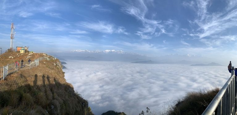 दमौली, १५ पुस : तनहुँको व्यास नगरपालिका–५ मानहुँकोटबाट मङ्गलबार बिहान देखिएको हिमालको दृश्य र कुहिरोले ढाकिएको दमौली बजार । पर्यटकीय गन्तव्यको रुपमा विकास भइरहेको मानहुँकोटमा दैनिक २–३ सय पर्यटक पुग्ने गरेका छन् ।
