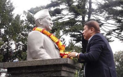 स्वर्गीय गणेशमान सिंहको सालिकमा माल्यार्पण
