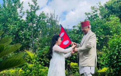 नातिनीसँग राष्ट्रिय झण्डा लिएर प्रफुल्लित बामदेव