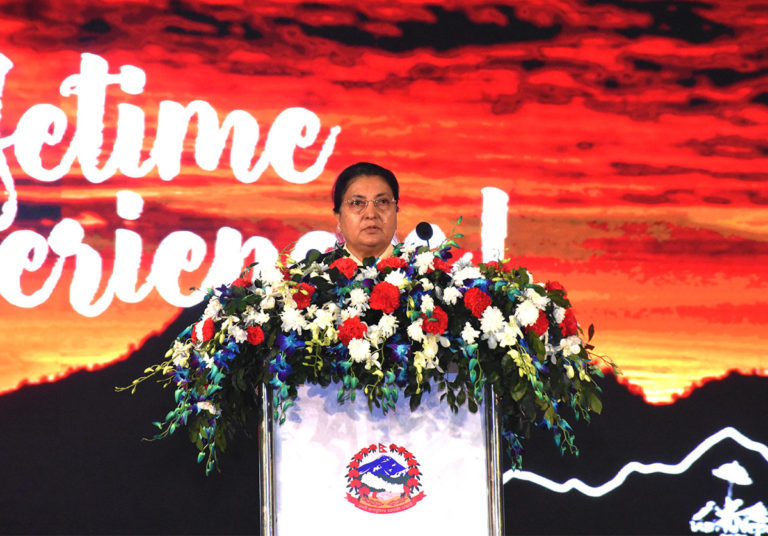 शुरुमा संस्कृति, पर्यटन तथा नागरिक उड्डयनमन्त्री योगेशकुमार भट्टराईले भ्रमण वर्षमा नेपाल घुम्न आउन सबै पर्यटकलाई निम्तो दिँदै आर्थिक विकासको आधार पर्यटनलाई बनाउने प्रतिबद्धता व्यक्त गरे । राष्ट्रपति भण्डारीले एकताको दिपज्योति प्रज्वलन गरी भ्रमण वर्षको उद्घाटन गरेकी थिईन्। सोही समारोहमा भ्रमण वर्षको मस्कट ‘यति’को प्रदर्शन गरियो ।