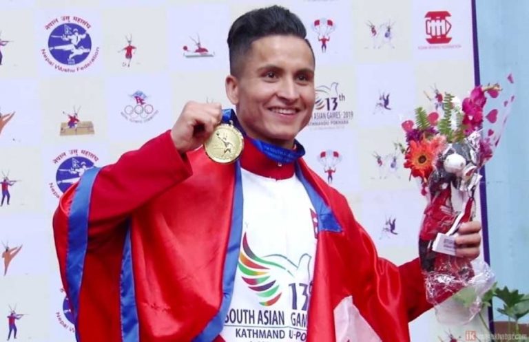 सुर्खेत, १७ पुस ; कर्णाली प्रदेश सरकारले गत महिना नेपालमा सम्पन्न भएको दक्षिण एशियाली खेलकूद प्रतियोगिता (साग)मा उसु खेलमा स्वर्ण पदक जित्ने सुर्खेतका दीपक हमाललाई पुरस्कृत गरेको छ । कर्णाली प्रदेश सरकार उद्योग, पर्यटन, वन तथा वातावरण मन्त्रालयद्वारा बुधबार राजधानी सुर्खेतमा आयोजित ‘नेपाल भ्रमण वर्ष सन् २०२०’ को शुभारम्भ कार्यक्रममा शाहीसहित छ जना पुरस्कृत भएका हुन् । स्वर्ण पदक विजेता हमाललाई मुख्यमन्त्री महेन्द्रबहादुर शाहीले रु तीन लाखसहित प्रमाणपत्र प्रदान गरे ।